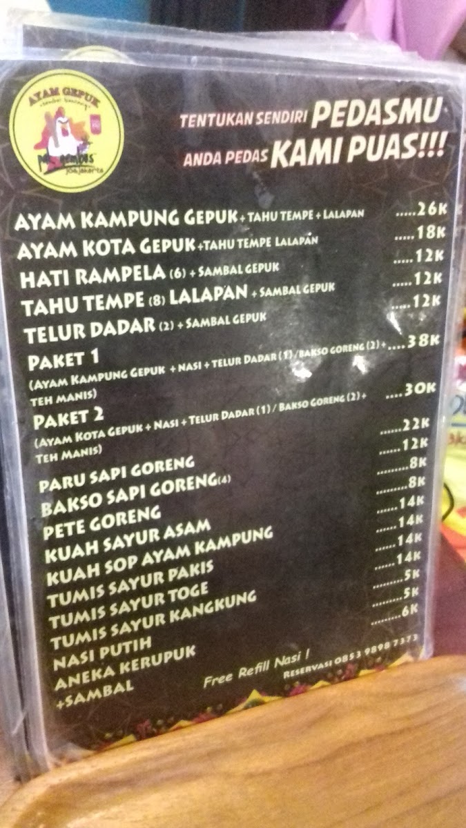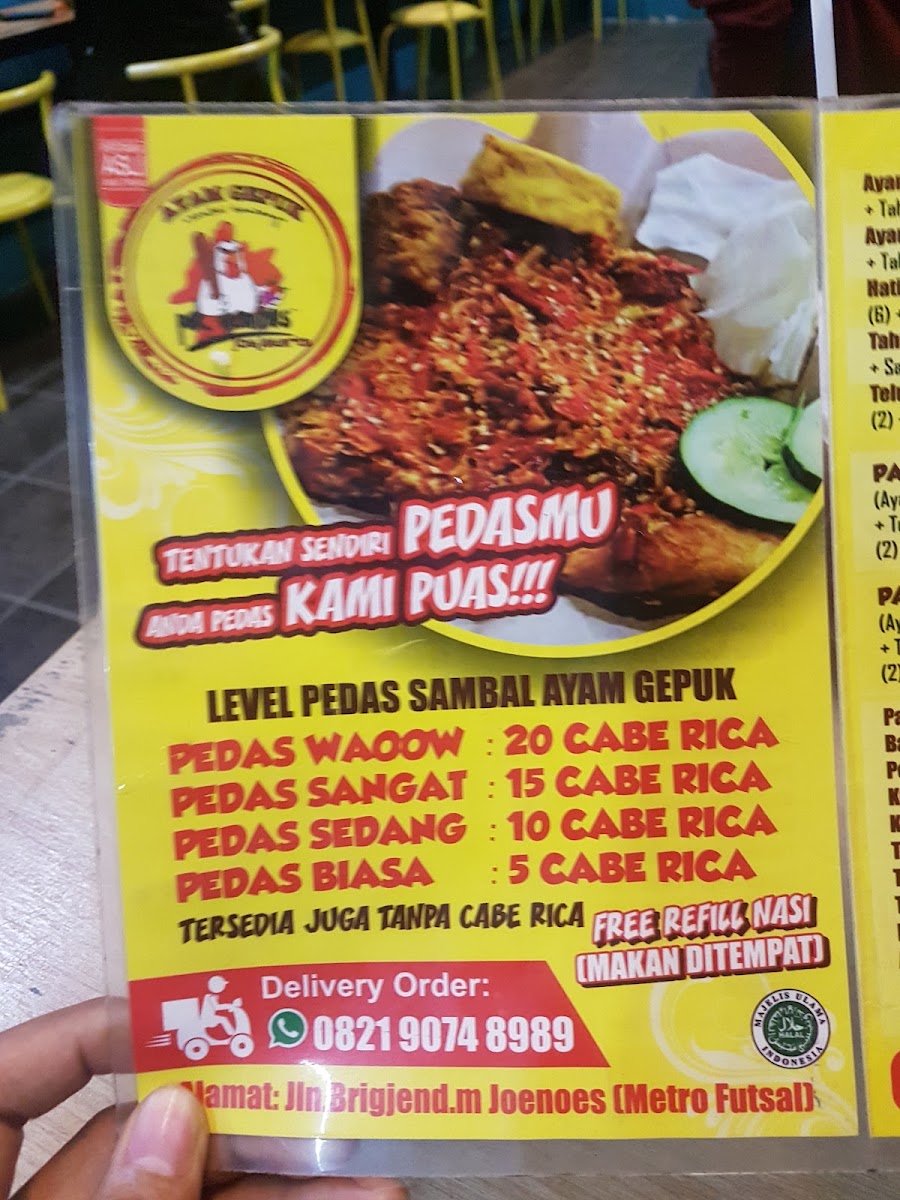 At Ayam Gepuk Bypass on Jl. Brigjen Muhammad Yunus, the menu is a celebration of bold, fiery flavors that define South East Sulawesi cuisine. The standout Ayam Gepuk Cabe 20 delivers a perfectly fried chicken with a punchy, spicy chili sauce that lingers pleasantly on the palate. Each dish is carefully balanced, offering both heat and savory depth, complemented by simple, comforting sides that enhance the main flavors without overpowering them. The menu maintains an approachable range, making it easy to navigate whether you’re after a quick, satisfying meal or a more indulgent culinary experience. Affordable pricing ensures that the quality and intensity of the flavors are accessible, and every dish reflects the restaurant’s dedication to freshness and authentic preparation. Overall, the menu at Ayam Gepuk Bypass provides a cohesive, flavorful journey, with Ayam Gepuk Cabe 20 standing out as the definitive highlight for anyone seeking a true taste of local Indonesian spice and tradition.